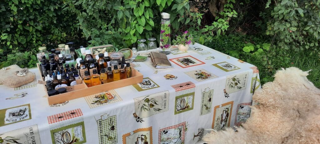 Dit traject omvat geen behandelingen. Je behandelt je eigen huid dagelijks thuis. Je krijgt producten mee die we speciaal voor jou op maat maken. Deze producten stellen we samen aan de hand van de kaarten die jij trekt en wat jouw huid nodig heeft. Jij test deze producten ook zelf uit met een methode die ik je ga leren. In principe heb je genoeg mee voor een maand en na die maand gaan we verder. Denk hierbij bijvoorbeeld aan een reiniging, wolpeeling, hydrolaat, crème, serum. Elke fase kan weer andere producten omvatten.